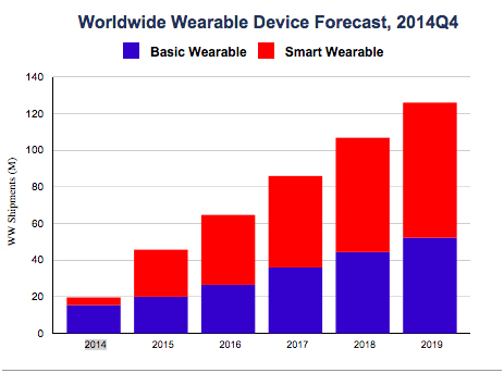 隨著Apple Watch的發布,智能可穿戴設備將迎來重要的一年。Apple Watch點燃了可穿戴設備市場,許多廠商都渴望來分一杯羹。另外,非智能可穿戴設備并不會消失。事實上,該市場將持續增長,因為許多領域都需要簡單的,一次性使用可穿戴設備。