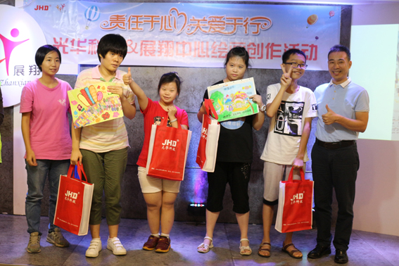 活動(dòng)現(xiàn)場(chǎng)除了欣賞孩子的作品,分享交流繪畫心得外,光華科技還為各位孩子帶來了禮品并為優(yōu)秀的作品進(jìn)行頒獎(jiǎng),以獎(jiǎng)勵(lì)孩子們?cè)诶L畫活動(dòng)中的非凡努力,同時(shí)也以此鼓勵(lì)他們繼續(xù)努力提高自己的綜合能力。展翔中心也特意回贈(zèng)了一份特別的心意——由中心孩子們親手制作的精致工藝品,以表達(dá)對(duì)光華科技的由衷謝意。