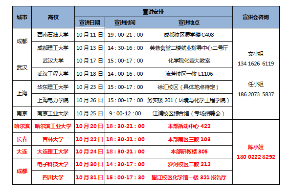:光華科技2018年度校園招聘具體時間安排(紅色字體部分為新增宣講會院校)