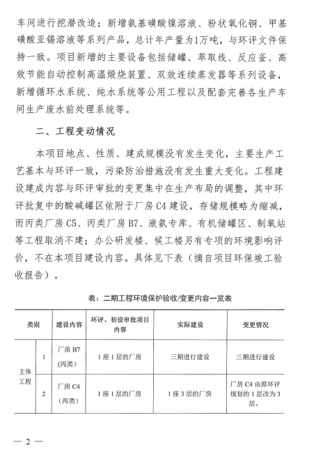 附件二:年產(chǎn)1萬噸電子化學(xué)品擴建技術(shù)改造建設(shè)項目竣工保護驗收意見