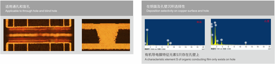 Selective organic conducting film (SOC) refers to a layer of conducting polymeric film selectively deposited on the resin and glass fiber of hole wall of circuit board and not deposited on copper surface; the film substitutes conventional chemical copper, and serves for breakover between circuit board layers; a layer of complete copper surface will be deposited quickly on SOC film during plating to enhance inter-layer interconnection. SOC applies to high muliti-layer, FPC and HDI boards.